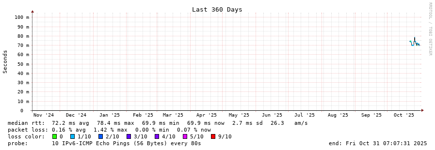 traceroute to 2a03:8f84::f1b6:9702:29c:9062 (2a03:8f84::f1b6:9702:29c:9062), 30 hops max, 80 byte packets  -  Generated at 2025-10-31 06:15:01