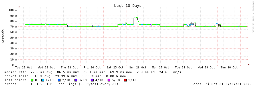11 > 2a03:8f84::f1b6:9702:29c:9062                 (2a03:8f84::f1b6:9702:29c:9062) [AS52023]  69.925ms   69.891ms   69.915ms