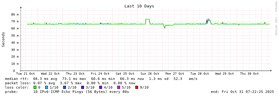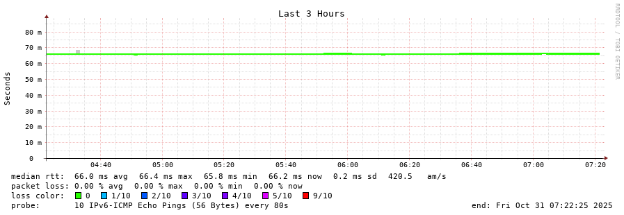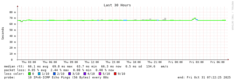 traceroute to 2a00:c30:bbbb:d::2 (2a00:c30:bbbb:d::2), 30 hops max, 80 byte packets - Generated at 2025-10-31 06:15:01