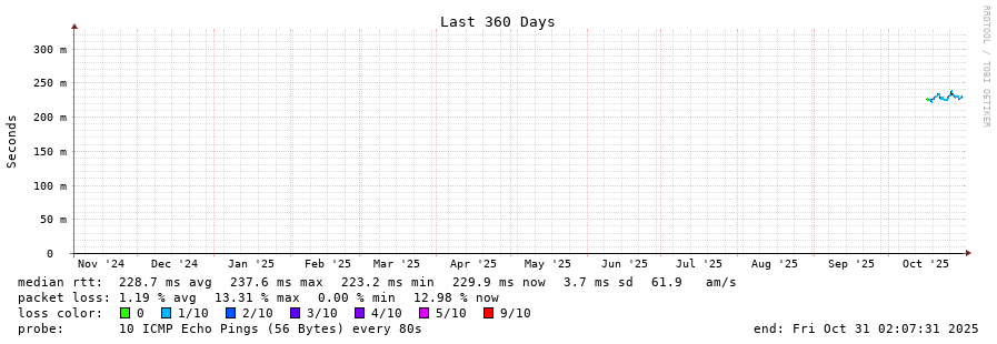 14 > 200.25.56.95 (200.25.56.95) [AS7195] 219.430ms 219.425ms 219.413ms