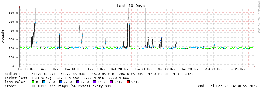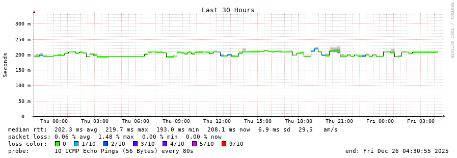9 > 5.178.43.189 (5.178.43.189) [AS6762] 202.060ms 202.091ms 201.981ms