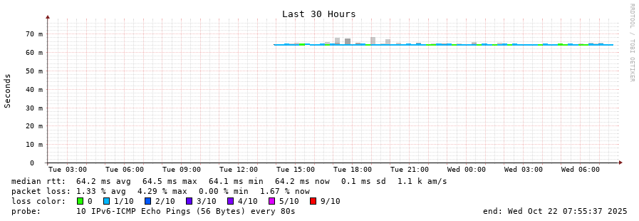traceroute to 2001:4350:1:1::ff90 (2001:4350:1:1::ff90), 30 hops max, 80 byte packets - Generated at 2025-10-22 07:45:01