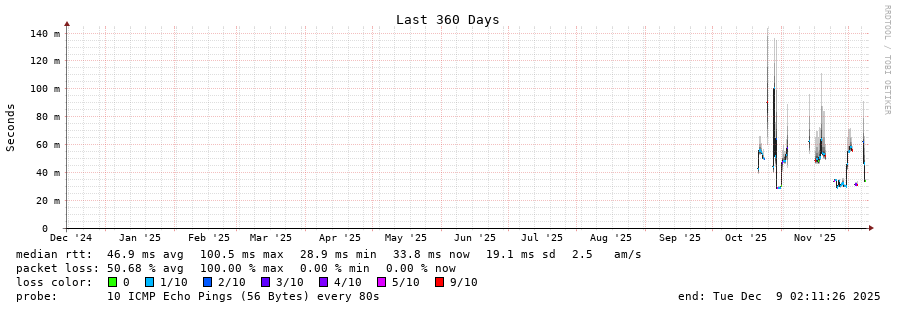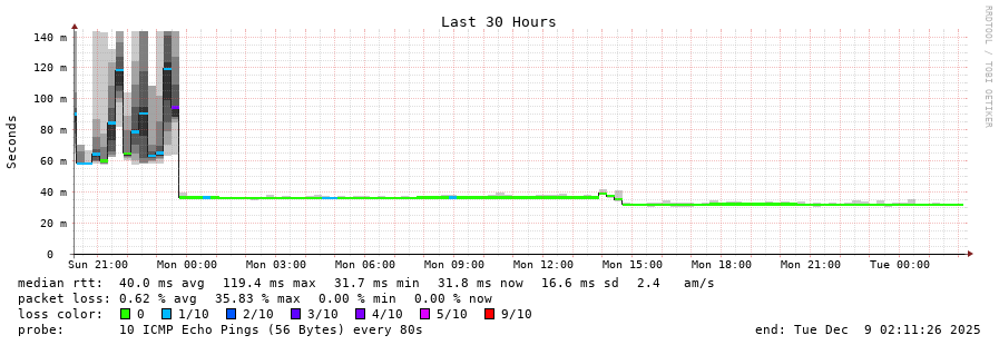 8 > 105.69.64.1 (105.69.64.1) [AS36884] 33.453ms 28.595ms 28.528ms