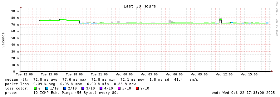 18 > VLAN-087.B2P.iNES.RO (83.166.222.125) [AS12310] 72.294ms 72.282ms 72.409ms