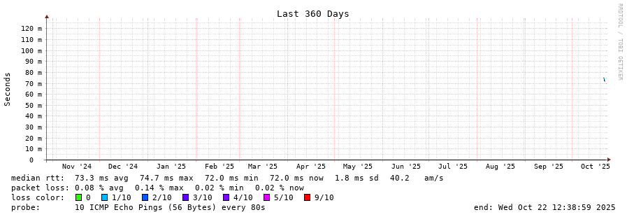 traceroute to 195.216.222.1 (195.216.222.1), 30 hops max, 60 byte packets - Generated at 2025-10-22 07:00:01
