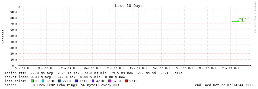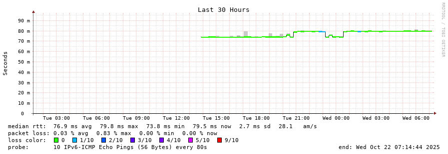 traceroute to 2a02:2f05:2113:7f00:220:4aff:fee0:220f (2a02:2f05:2113:7f00:220:4aff:fee0:220f), 30 hops max, 80 byte packets - Generated at 2025-10-22 03:00:01