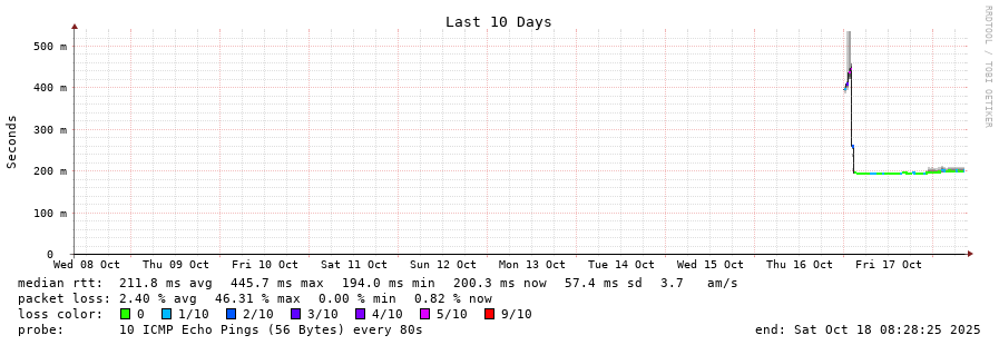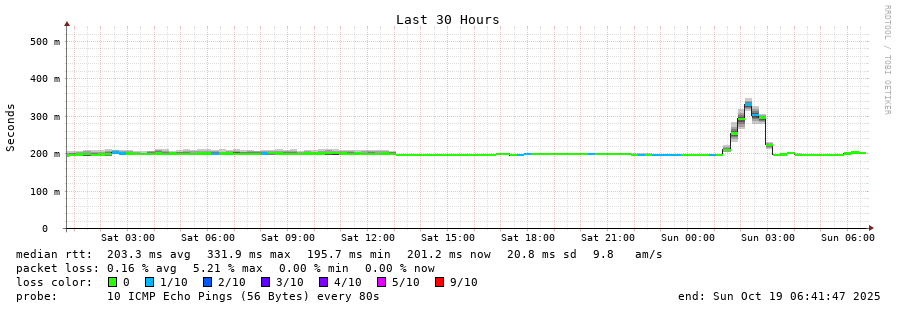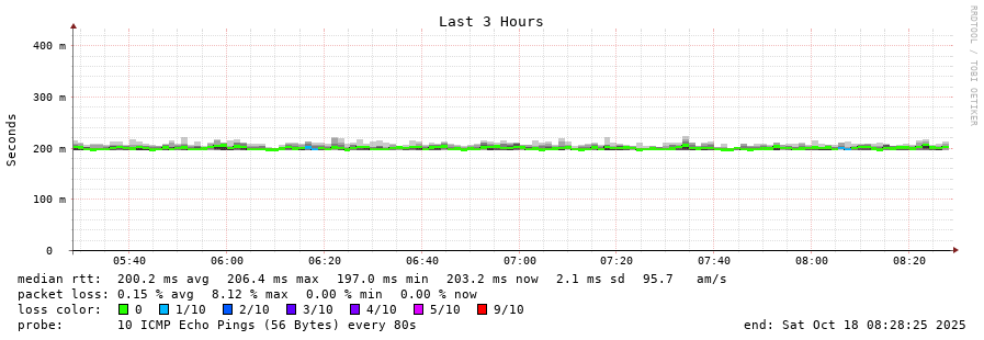 10 > 213.144.185.5 (213.144.185.5) [AS6762] 195.773ms 200.872ms 201.451ms