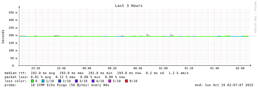 12 > 181.225.81.174 (181.225.81.174) [AS263210] 191.611ms 191.422ms 191.407ms