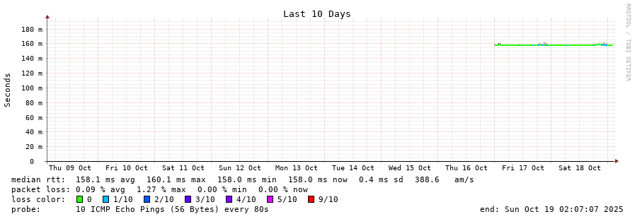 13 > 138.0.43.255 (138.0.43.255) [AS52320] 162.208ms 162.216ms 162.199ms
